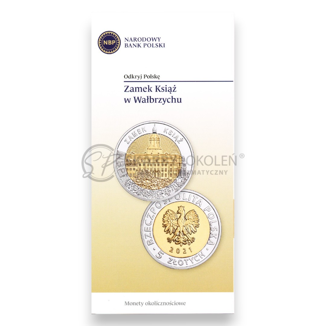Oficjalny folder emisyjny NBP w języku polskim do monety okolicznościowej "Zamek Książ w Wałbrzychu" z serii "Odkryj Polskę".