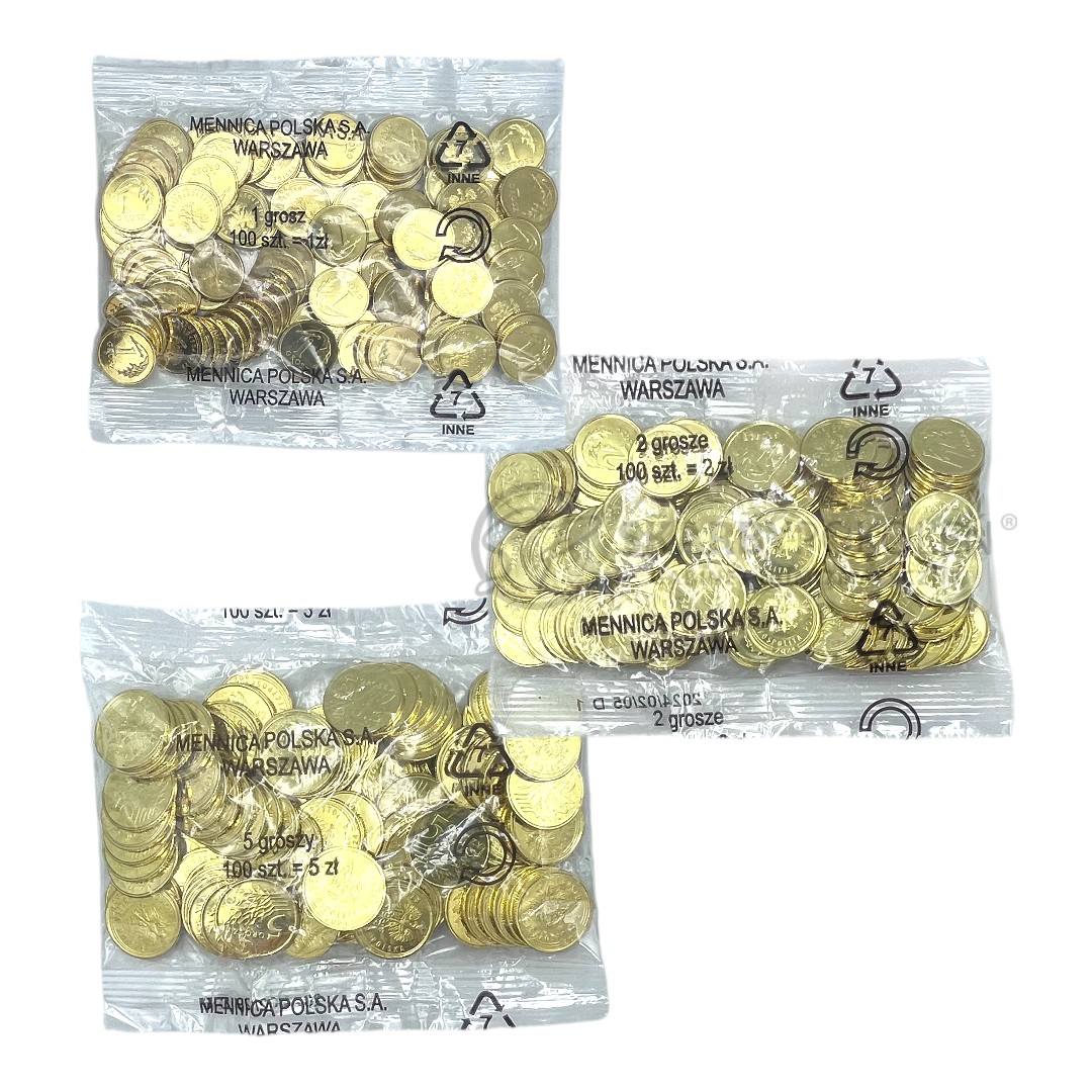1, 2, 5 groszy 2024 MW – Zestaw 3 woreczków menniczych (łącznie 300 monet)