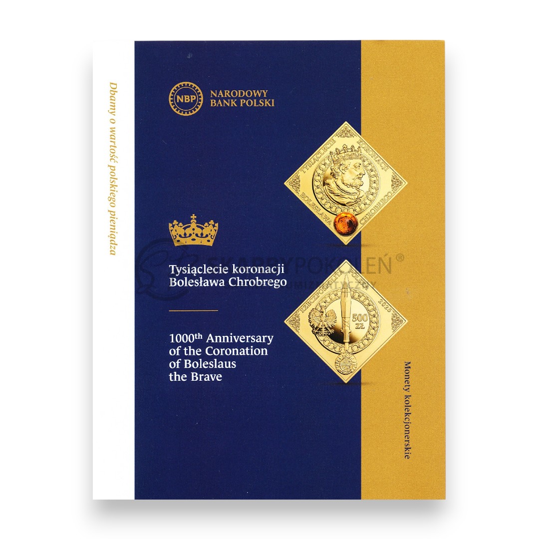 Oficjalny folder emisyjny NBP w języku polsko-angielskim do złotej monety kolekcjonerskiej, upamiętniającej "Tysiąclecie koronacji Bolesława Chrobrego".