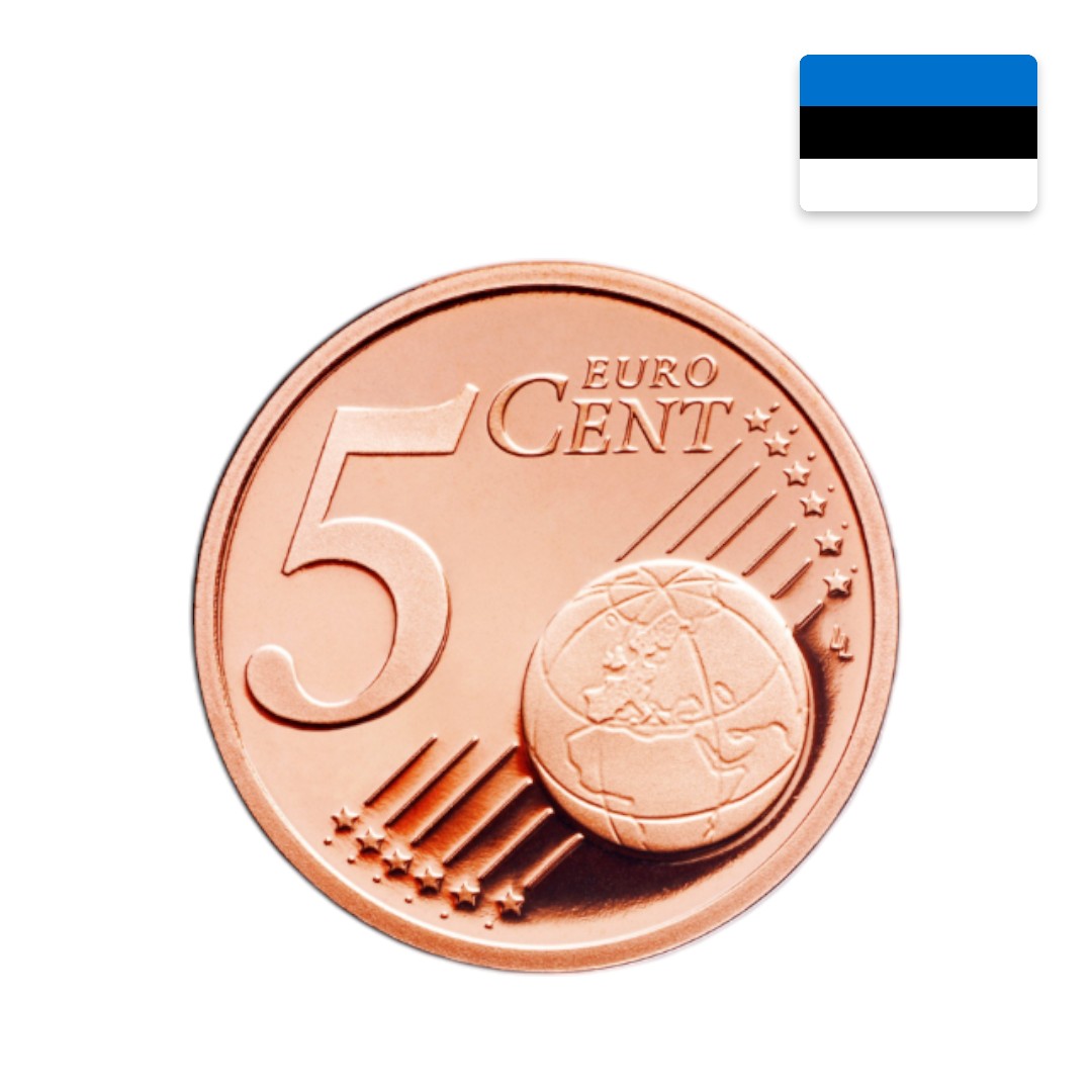 Moneta obiegowa strefy EURO o nominale 5 eurocentów z kraju ESTONIA oznaczona rokiem produkcji 2018.