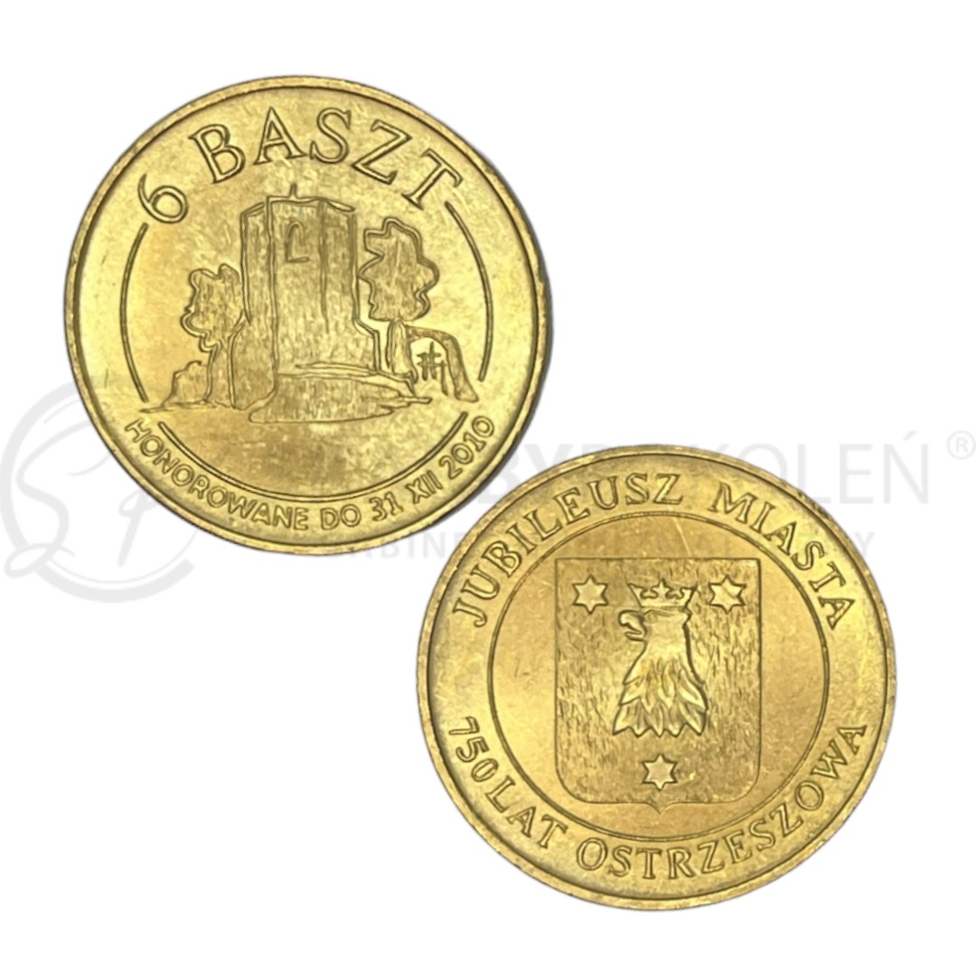 Dukat lokalny/miejski o nominale 6 Baszt upamiętniający - "Jubileusz 750 lecie miasta Ostrzeszów".