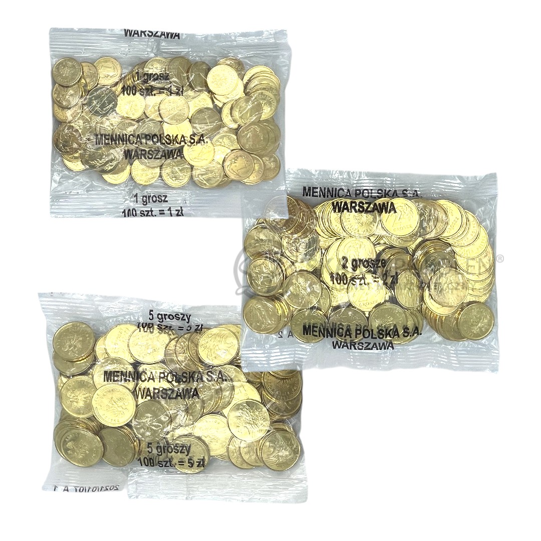 1, 2, 5 groszy 2021 MW – Zestaw 3 woreczków menniczych (łącznie 300 monet)