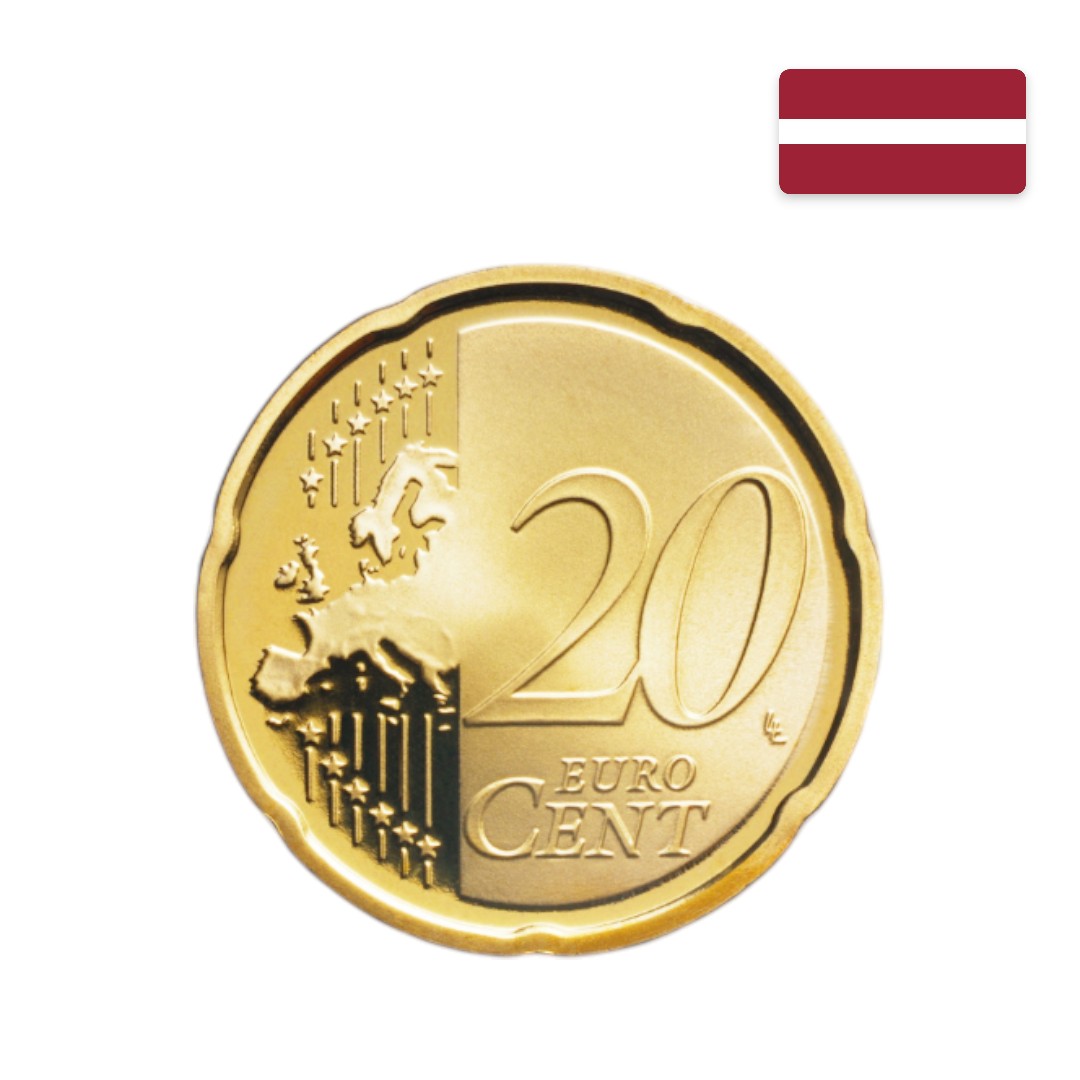 Moneta obiegowa strefy EURO o nominale 20 eurocentów z kraju ŁOTWA oznaczona rokiem produkcji 2014.