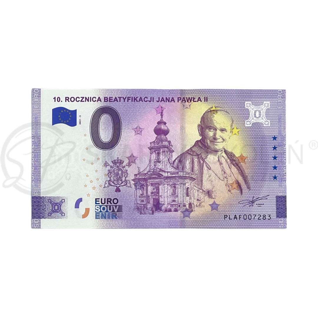 Banknot pamiątkowy 0 EURO upamiętniający "10. Rocznica Beatyfikacji Jana Pawła II".