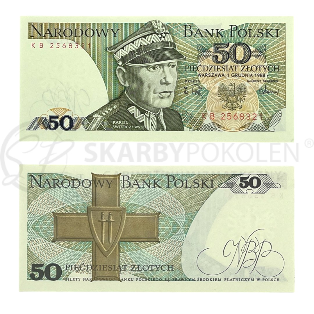 Banknot PRL - 50 ZŁOTYCH 1988 - SERIA KB - Karol Świerczewski