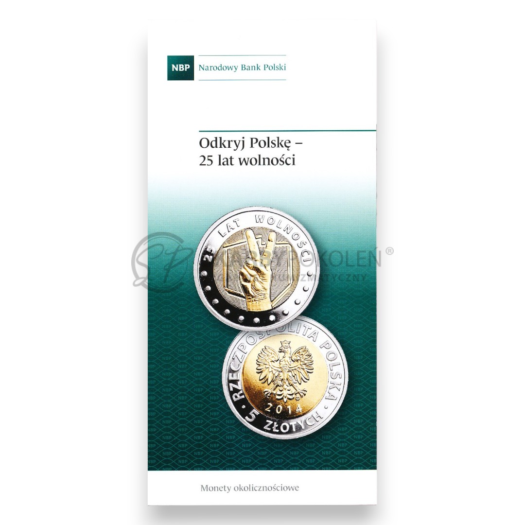 Oficjalny folder emisyjny NBP w języku polskim do monety okolicznościowej "25 lat wolności" z serii "Odkryj Polskę".